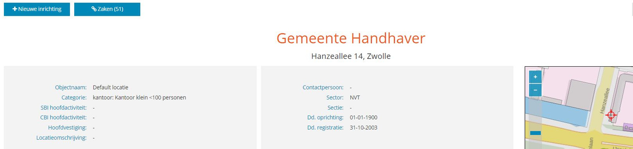 Klik op 'zaken', om de zaken en besluiten m.b.t. deze inrichting te zien.